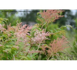 Sorbaria arborea est un grand arbuste à tiges dressées puis courbées portant de grandes feuilles composées prenant de belles couleurs rouge-orangé à l’automne. Il atteint entre 3 et 5 m de haut environ. En juin-juillet, ses minuscules fleurs blanches apparaissent en énormes panicules très décoratives de 20/30 cm. Culture au soleil ou à mi-ombre, dans toute terre de jardin. Il tolère le calcaire. Bien rustique, z6. Nos plants sont issus de graines collectées en Chine, dans la province du Shaanxi, dans les Tai Bai shan.